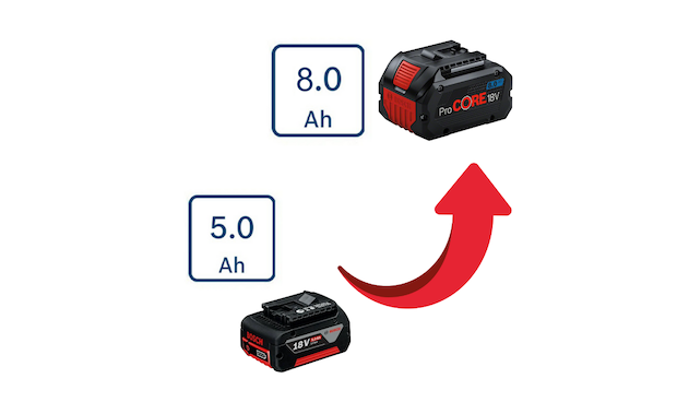 Bosch Şarjlı Set alımlarınızda, aküleri GBA 5.0 Ah'den çok daha güçlü olan ProCORE 8.0 Ah'ye yükseltmek isterseniz bundan sepetinize atabilirsiniz. Kaç adet aküyü 8.0 Ah'ye yükseltmek istiyorsanız, sepetinize aynı sayıda bundan atın.
