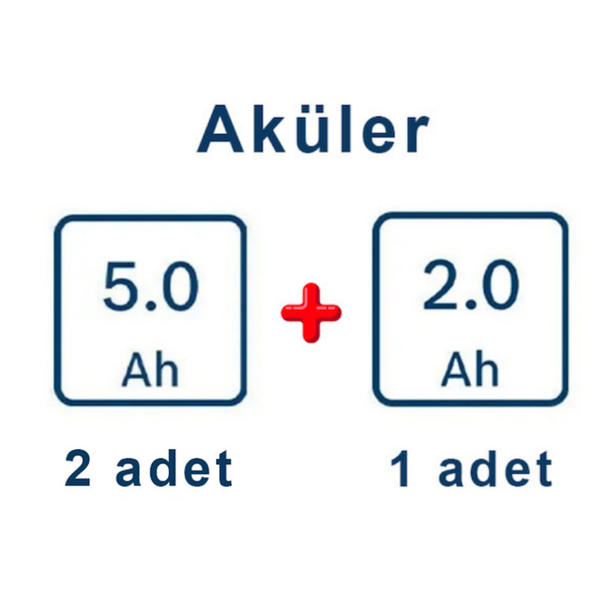 Bu sette başka neler mi var? 2 adet 5.0 Ah ve 1 adet de 2.0 Ah akü ve orjinal Bosch Kanvas Çantası var. Ama asıl güzel olanı, isterseniz hem 3'üncü aküyü de çok az bir farkla 5 Ah'ye yükseltebilirsiniz hem de (tabii yine siz isterseniz) ilave bir 5 Ah aküyü süper bir ekstra indirimle alabilirsiniz. Ayrıntılar için, hemen Opsiyonel Seçeneklere bakın.