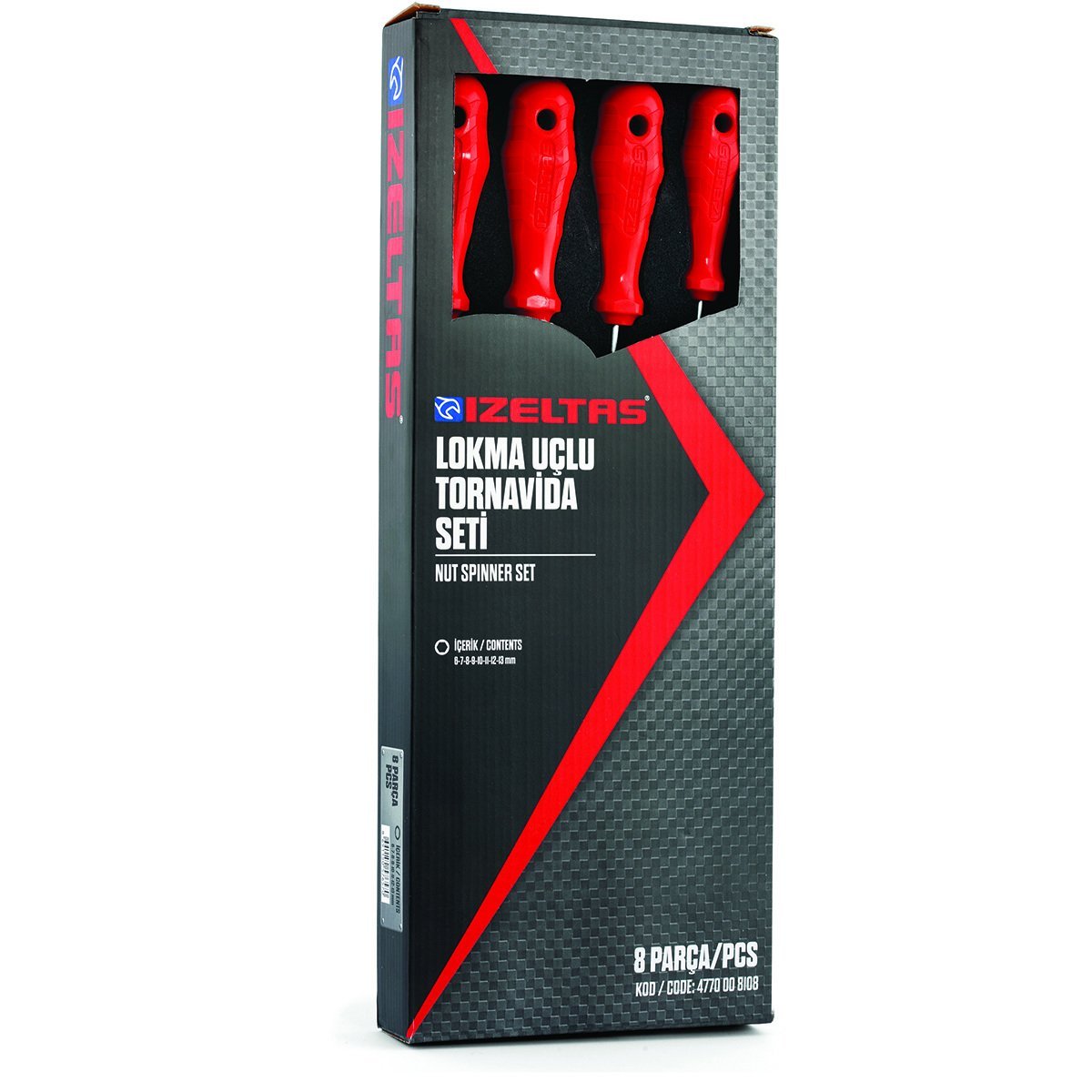 İzeltaş Lokma Uçlu Tornavida Seti, 8 parçadan oluşan bir settir ve farklı boyutlardaki lokma uçları ile tornavida kullanımını bir araya getirir. Bu set, profesyonel ve amatör kullanıcılar için uygundur ve dayanıklı malzemelerden üretilmiştir. Ergonomik tasarımı sayesinde rahat ve kolay kullanım sağlar.